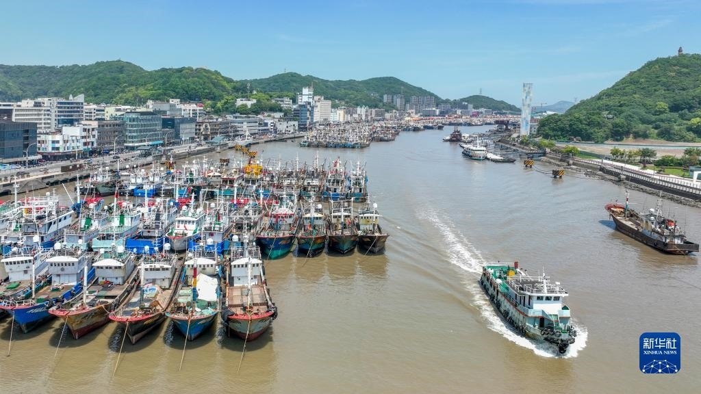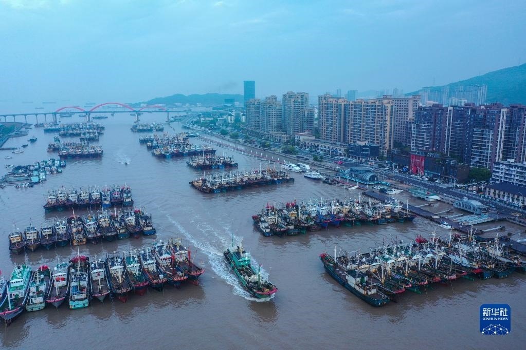 4月30日清晨,在浙江省舟山市普陀區(qū)沈家門漁港,漁船陸續(xù)進港準備休漁(無人機照片)。
