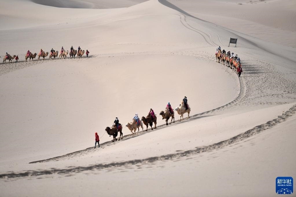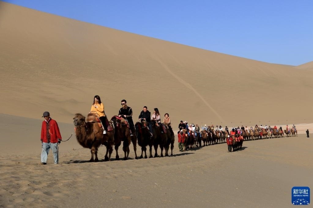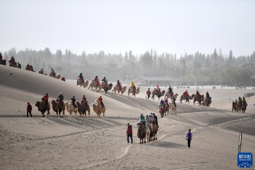 據(jù)介紹,截至4月29日,敦煌市內(nèi)鳴沙山月牙泉等六大景區(qū)今年已累計(jì)接待游客60萬人,同比增長(zhǎng)448.72%,比2019年同期增長(zhǎng)37.75%。   新華社記者 方欣 攝