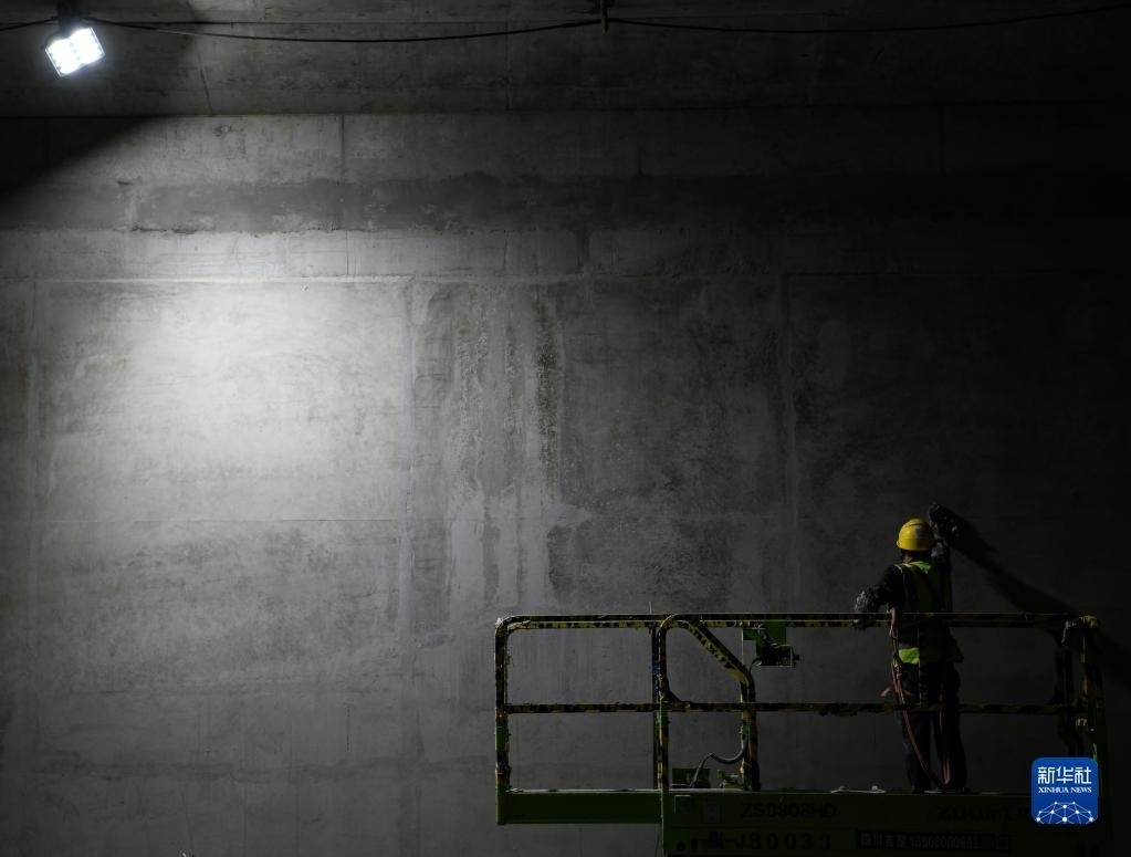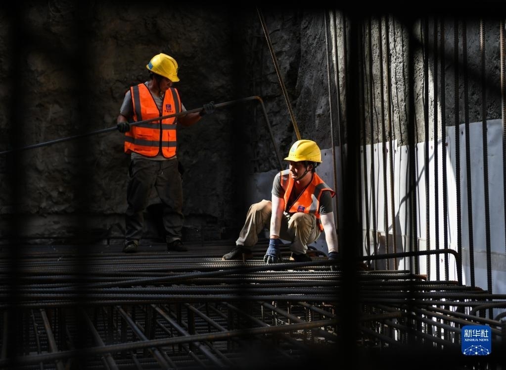 5月1日,在成都地鐵27號線一期工程項目花照壁北站施工現(xiàn)場,中建三局的工人在施工。   新華社記者 王曦 攝
