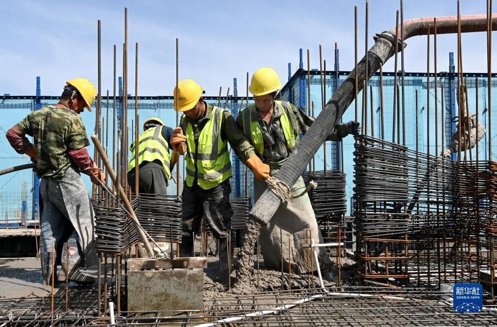 5月1日,在浙江省杭州市臨平區(qū)一個項目工地,中建三局的建設(shè)者在施工中。   新華社記者 黃宗治 攝