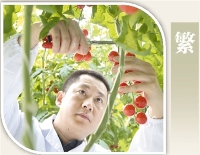 江蘇省昆山市陸家鎮(zhèn)未來(lái)農(nóng)業(yè)示范園中,技術(shù)人員在采摘新選育出的西紅柿品種。許叢軍攝(人民視覺)