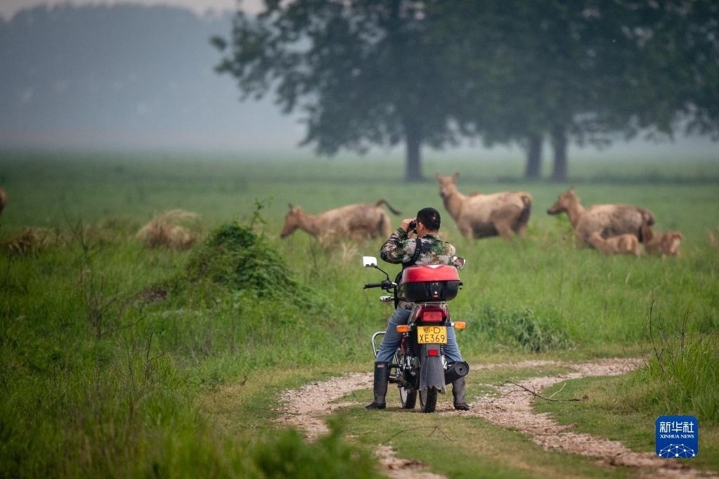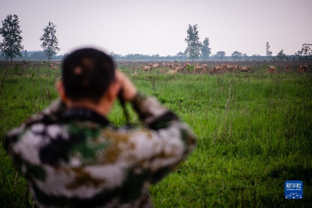 巡護隊伍通過望遠鏡、長焦相機、無人機、視頻監(jiān)測塔、紅外相機等工具,對1500余頭麋鹿進行日常監(jiān)測、年節(jié)律周期監(jiān)測、種群動態(tài)監(jiān)測,并對保護區(qū)內(nèi)的氣象數(shù)據(jù)、水文數(shù)據(jù)、地表水質數(shù)據(jù)、植被類型以及其他野生動物情況進行監(jiān)測記錄。他們還需要承擔卡口值守、應急管理等工作。在他們的悉心照料下,這里成為適宜麋鹿種群棲息的家園。