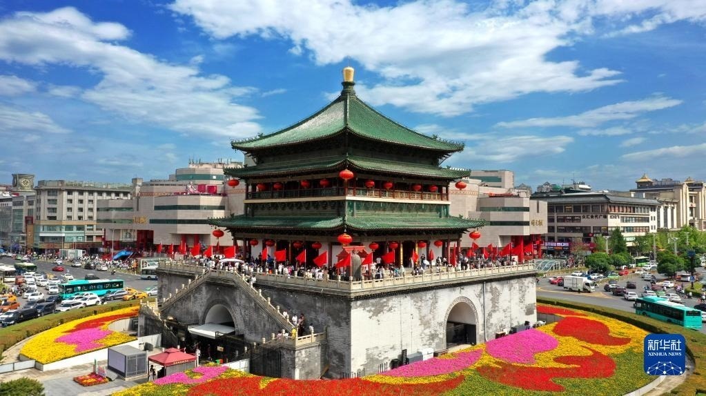 西安鐘樓(5月1日攝,無人機(jī)照片)。
