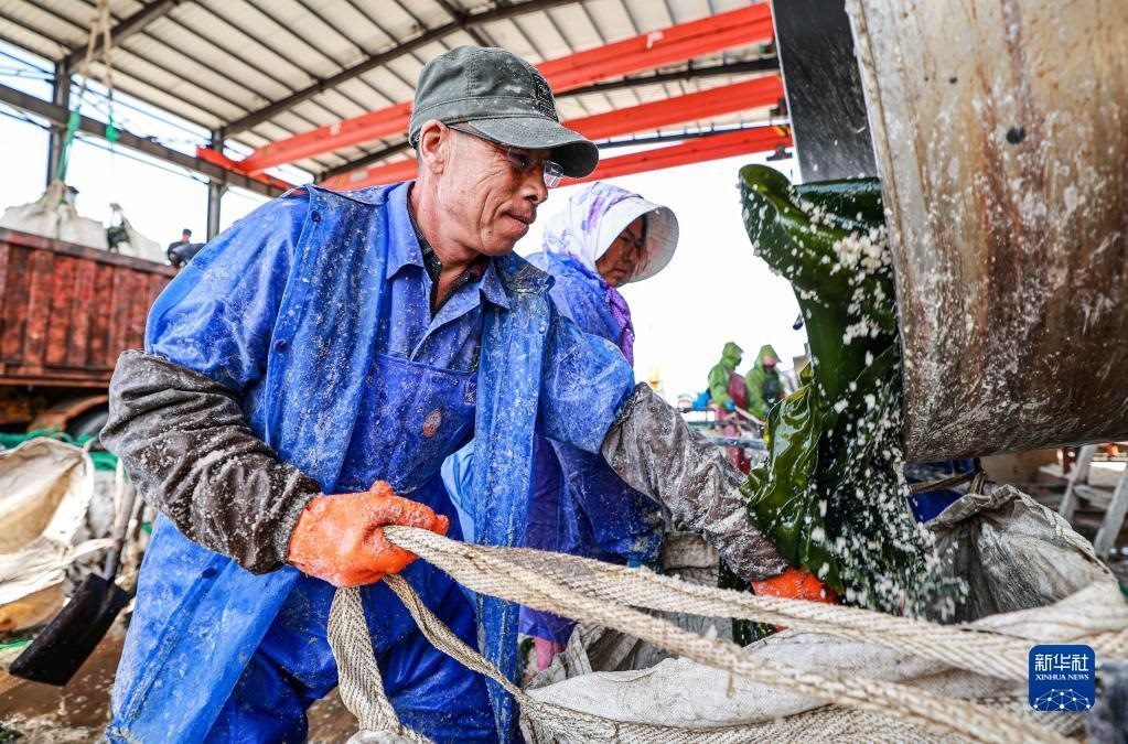 山東省榮成市被譽(yù)為“中國(guó)海帶之鄉(xiāng)”,海帶年產(chǎn)量43萬(wàn)噸,其中鹽漬海帶近26萬(wàn)噸,產(chǎn)品暢銷國(guó)內(nèi)外市場(chǎng)。新華社發(fā)(李信君 攝)