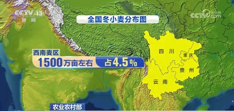 其中,西南麥區(qū)包括重慶、四川、貴州、云南,冬小麥面積1500萬(wàn)畝左右,占4.5%。