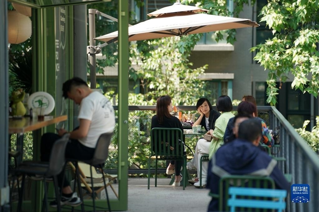 5月11日,人們?cè)谖靼彩醒闼^(qū)三五一一社區(qū)一家咖啡館消費(fèi)休閑。