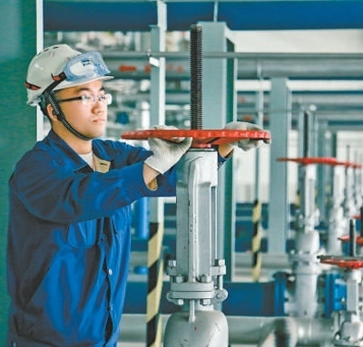 工人檢查設(shè)備運行情況。
