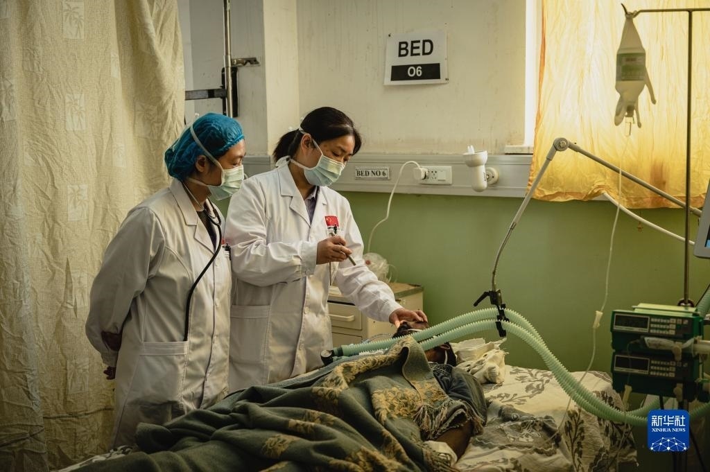 5月9日,在厄立特里亞首都阿斯馬拉的奧羅特醫(yī)院,醫(yī)療隊(duì)神經(jīng)外科醫(yī)生王玉莉(右)和呼吸內(nèi)科醫(yī)生高崴崴在ICU病房會(huì)診。