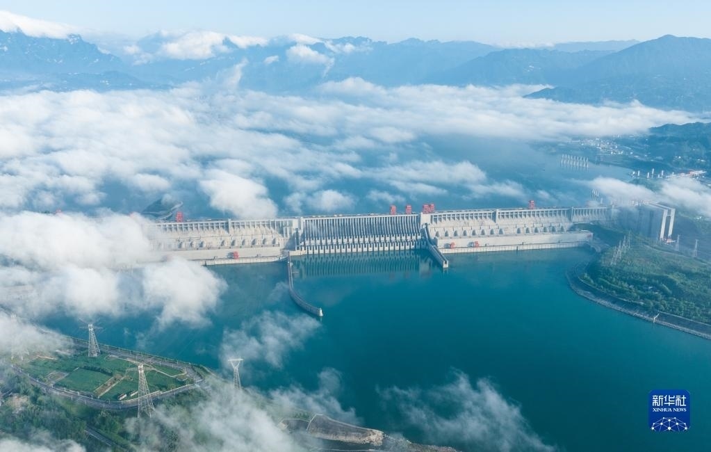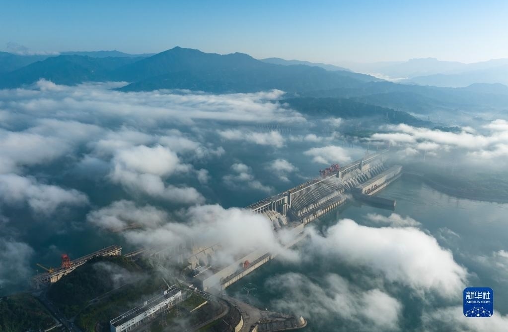 當(dāng)日,湖北宜昌雨過(guò)天晴,三峽上空云霧繚繞,美景如畫。