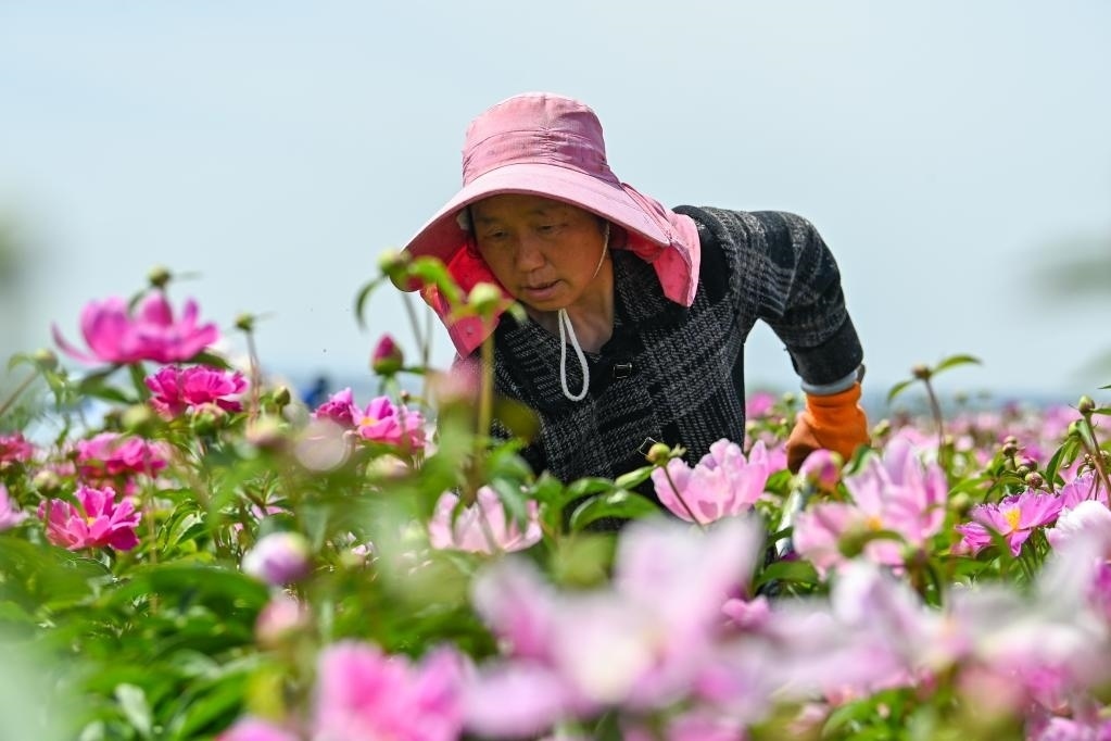 “花經(jīng)濟”持續(xù)升溫下,越來越多農(nóng)民走出家門,成為產(chǎn)業(yè)工人。入夏,走進伊寧縣天山花海景區(qū),連片芍藥、亞麻花爭相盛開,工人正在田間加緊除草、養(yǎng)護。