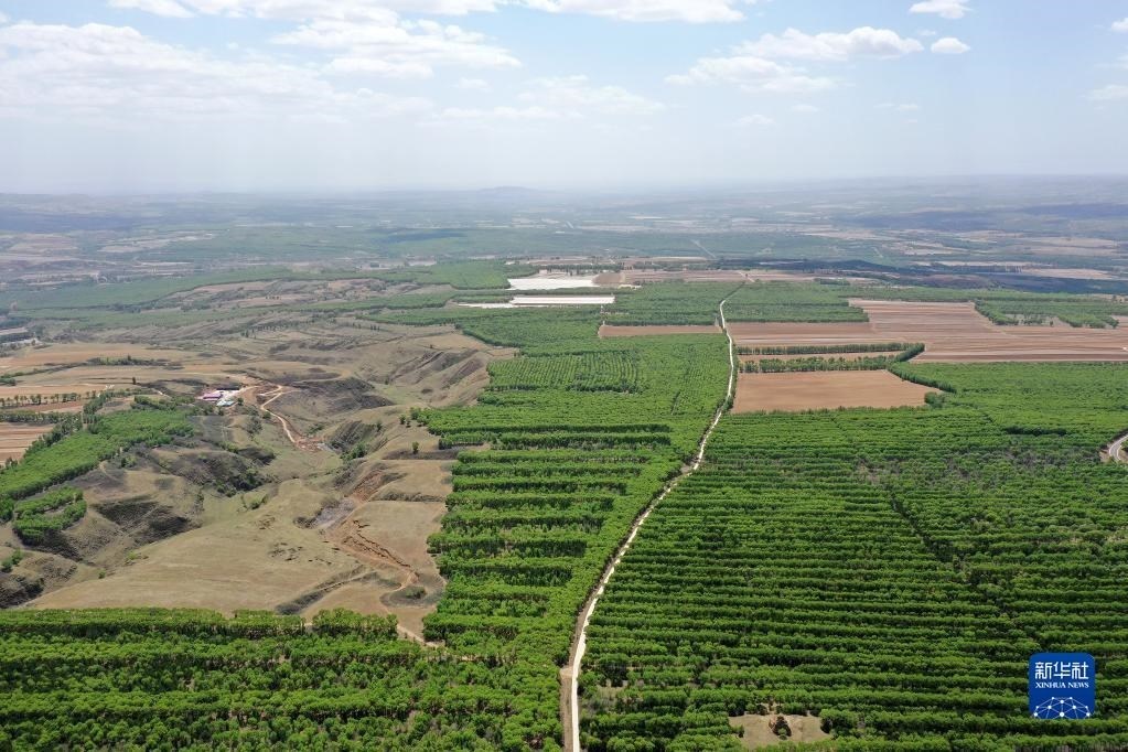夏日時(shí)節(jié),山西省右玉縣處處綠意盎然,森林、村落、農(nóng)田組成一幅美麗的生態(tài)畫卷。