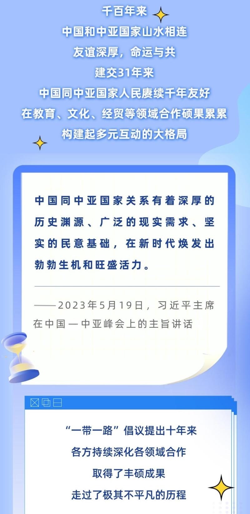 從去年1月的建交30周年視頻峰會(huì),到今年這次中國—中亞峰會(huì),習(xí)近平主席同中亞五國元首連續(xù)兩年集體會(huì)晤,并正式成立中國—中亞元首會(huì)晤機(jī)制,為中國—中亞關(guān)系發(fā)展作出戰(zhàn)略領(lǐng)航。下面,讓我們一起通過習(xí)近平主席的重要講話,回顧中國與中亞國家源遠(yuǎn)流長的友誼、極其不凡的合作歷程,讀懂中國—中亞峰會(huì)的重要意義。