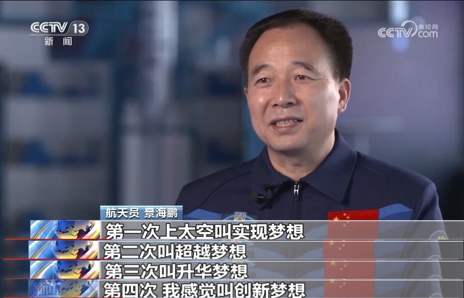 航天員 景海鵬:第一次上太空叫實(shí)現(xiàn)夢想,第二次叫超越夢想,第三次叫升華夢想,第四次,我感覺叫創(chuàng)新夢想。很感恩新時代,剛才說如果沒有這個偉大新時代,就不會有載人航天的連戰(zhàn)連捷;如果沒有這個偉大新時代,還夢想飛兩次飛三次飛四次,你想都不敢想,夢都夢不到。