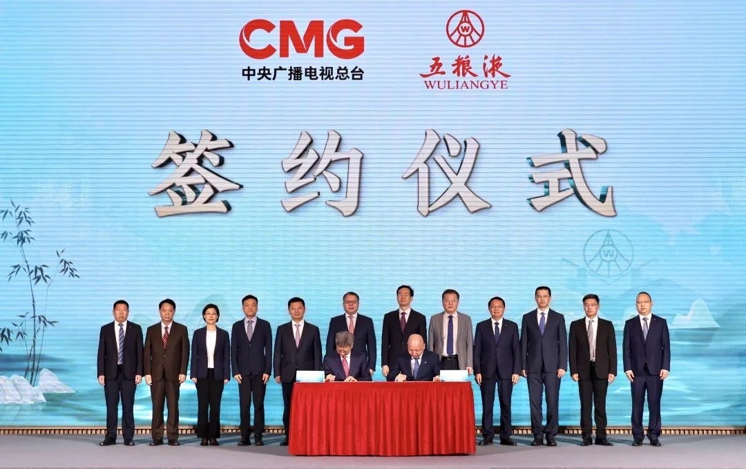 在彭健明、方存好、廖文彬、曾從欽以及總臺(tái)華語(yǔ)環(huán)球節(jié)目中心主任李欣雁,財(cái)經(jīng)節(jié)目中心副主任(主持工作)蔡俊,央視國(guó)際網(wǎng)絡(luò)有限公司董事長(zhǎng)、央視頻融媒體發(fā)展有限公司總經(jīng)理過(guò)彤,四川總站副站長(zhǎng)(主持工作)樊承志,四川總站副召集人鄭直,宜賓市副市長(zhǎng)羅春濤,五糧液集團(tuán)(股份)公司黨委副書(shū)記肖浩,五糧液股份公司總經(jīng)理助理、五糧液品牌事業(yè)部總經(jīng)理黃太國(guó)的共同見(jiàn)證下,總臺(tái)總經(jīng)理室副召集人徐立軍與五糧液股份公司副總經(jīng)理劉洋現(xiàn)場(chǎng)簽署了品牌建設(shè)戰(zhàn)略合作協(xié)議。
