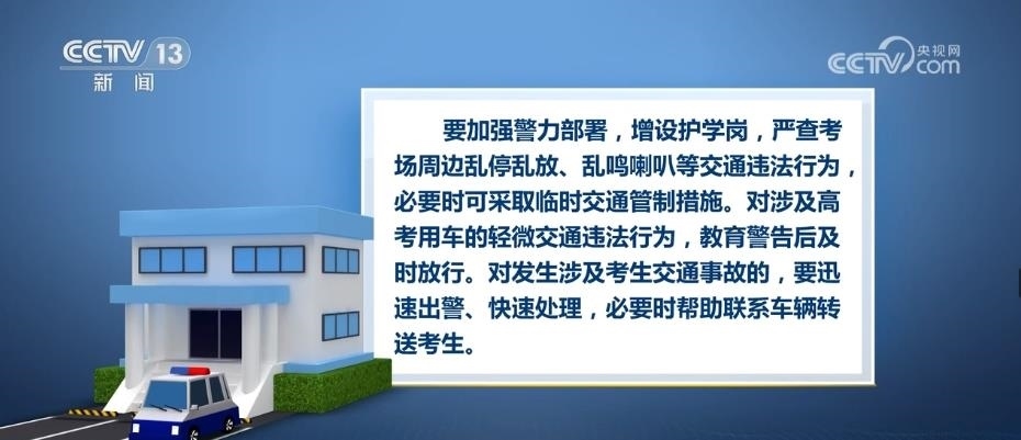 央視網(wǎng)消息:公安部交通管理局近日要求,各地公安交管部門(mén)認(rèn)真做好全國(guó)高考交通管理工作。