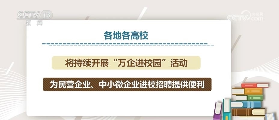 此外,教育部會同工業(yè)和信息化部、全國工商聯(lián)等部門聯(lián)合舉辦“專精特新”中小企業(yè)進校園、“百城萬企”民企高校攜手促就業(yè)行動等拓崗招聘活動。各地各高校將持續(xù)開展“萬企進校園”活動,為民營企業(yè)、中小微企業(yè)進校招聘提供便利。
