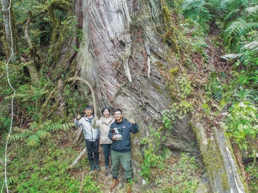 測量人員站在西藏柏木最高樹下合照。