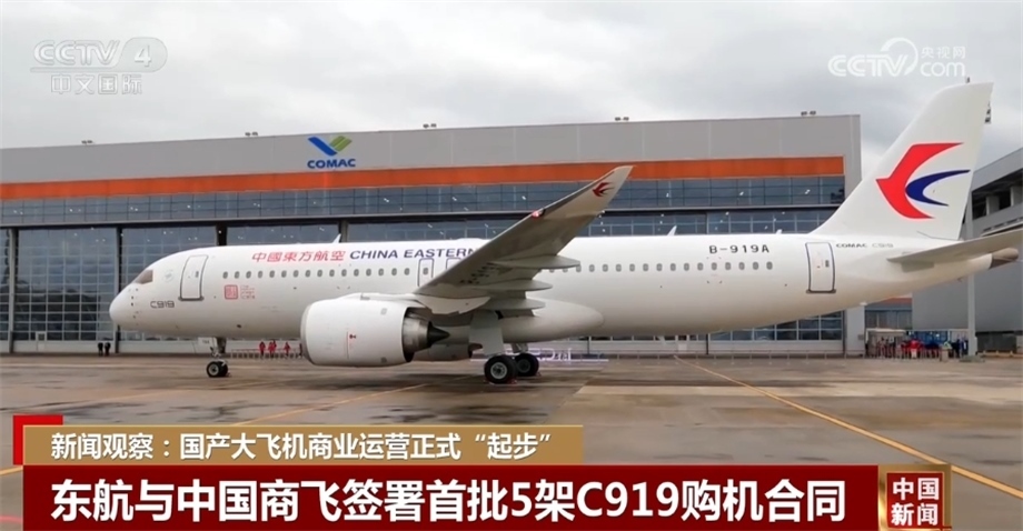C919大型客機是中國首次按照國際通行適航標準自行研制、具有自主知識產權的噴氣式干線客機。據介紹,中國東航和中國商飛已簽署了首批5架C919購機合同。中國商飛今年早些時候則透露,C919訂單數量已經接近1200單。