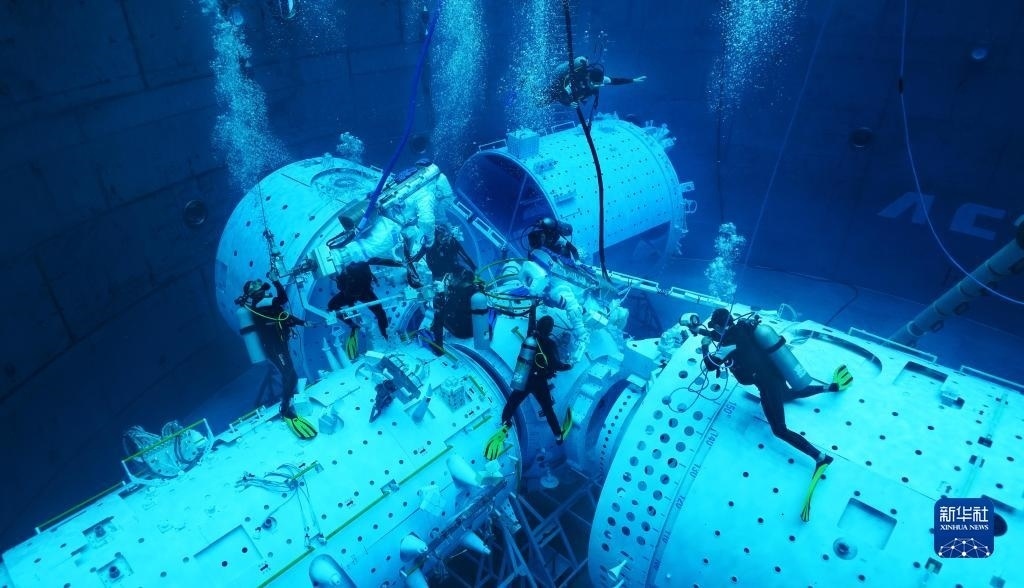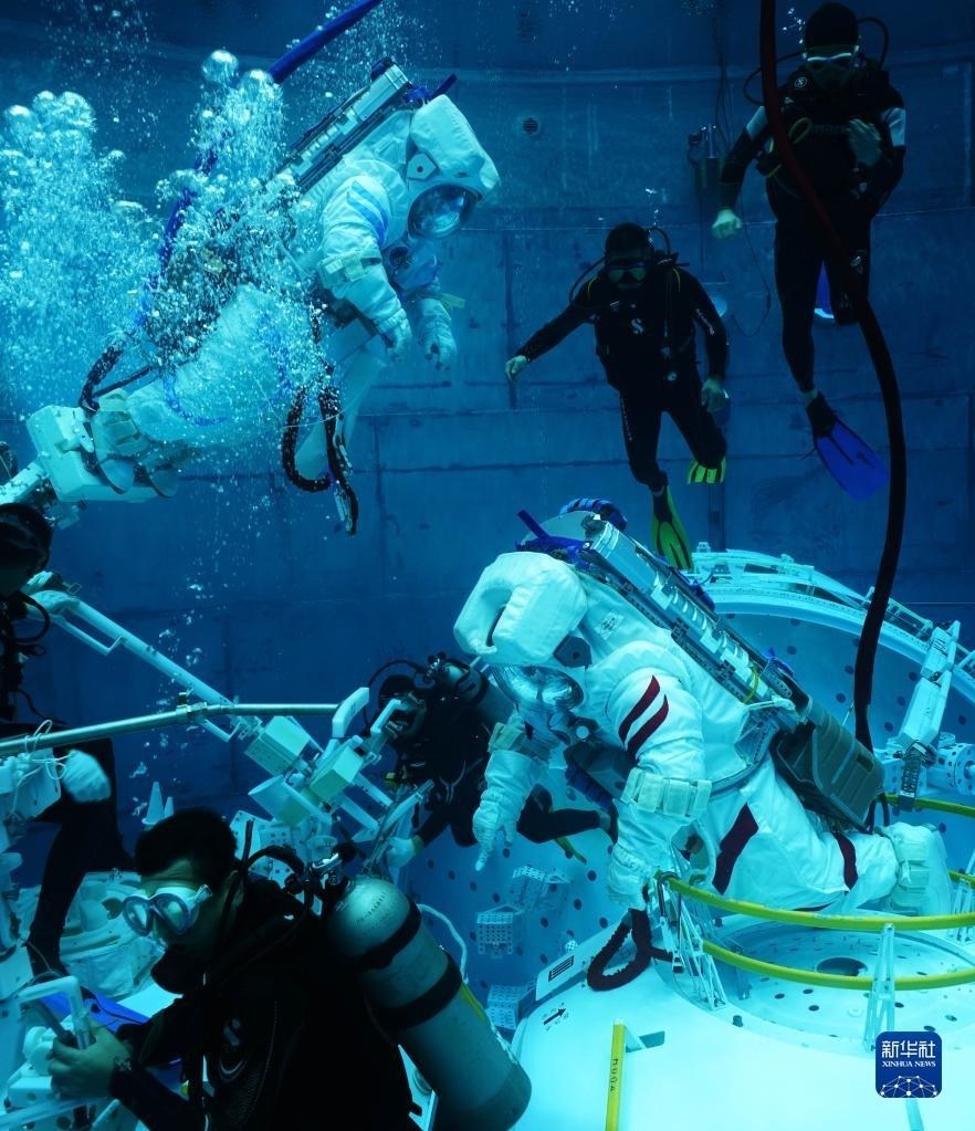 神舟十六號航天員在進行水下訓練(2022年9月14日攝)。新華社發(fā)(徐部 攝)
