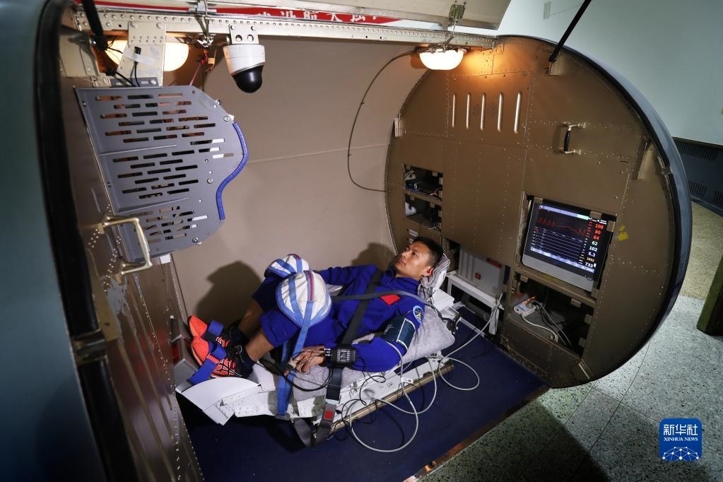 神舟十六號航天員朱楊柱在進行超重耐力訓練(2022年4月22日攝)。新華社發(fā)(王夏陽 攝)