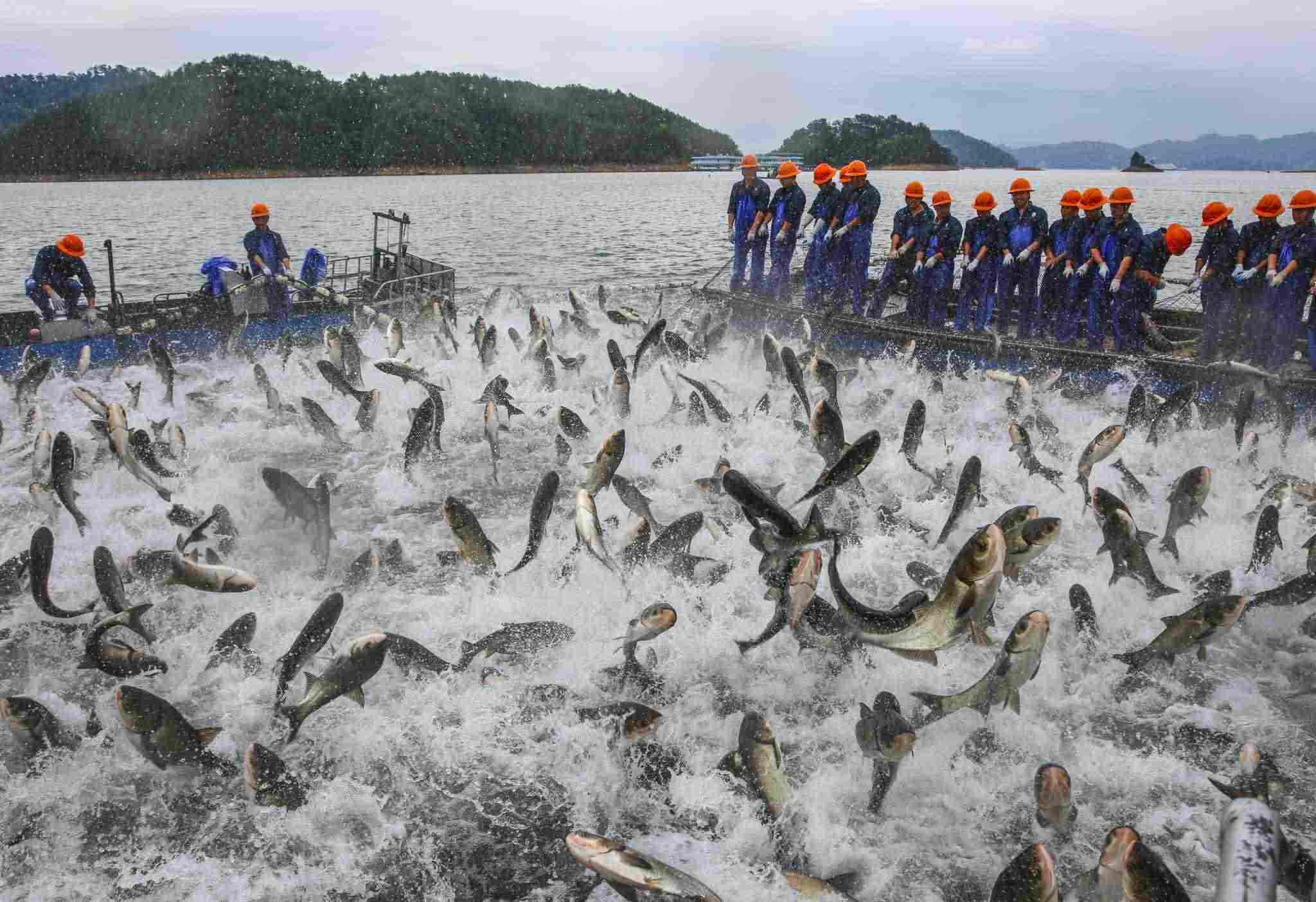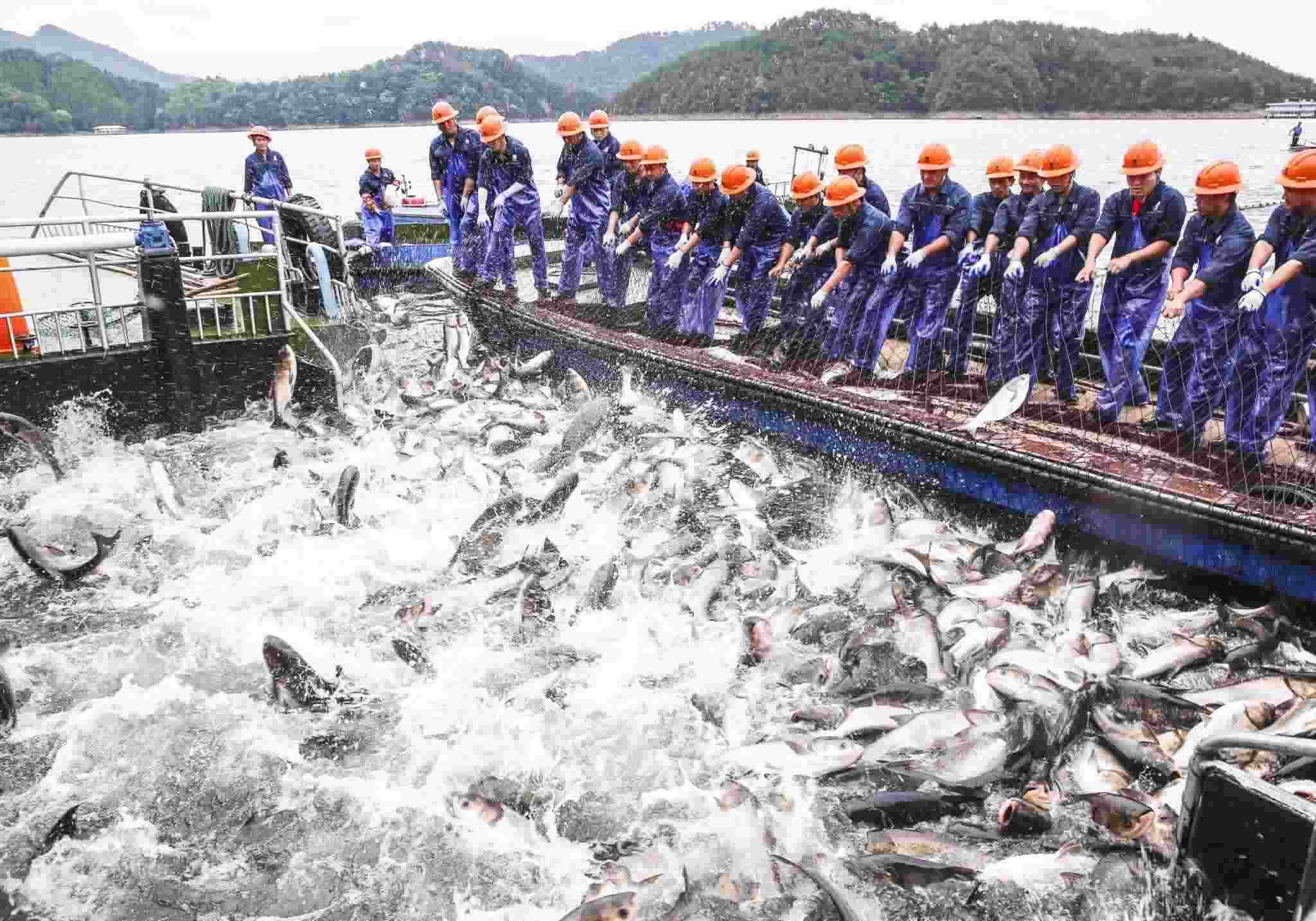 杭州:千島湖再現(xiàn)“巨網(wǎng)捕魚(yú)”景象
