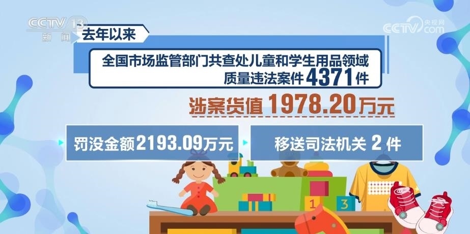 2022年以來,全國市場監(jiān)管部門共查處兒童和學(xué)生用品領(lǐng)域質(zhì)量違法案件4371件,涉案貨值1978.20萬元,罰沒金額2193.09萬元,移送司法機(jī)關(guān)2件。