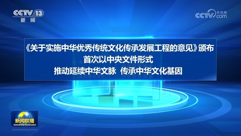 央視網(wǎng)消息(新聞聯(lián)播):“中華文明源遠(yuǎn)流長、博大精深,是中華民族獨特的精神標(biāo)識,是當(dāng)代中國文化的根基,是維系全世界華人的精神紐帶,也是中國文化創(chuàng)新的寶藏。”習(xí)近平總書記高度重視中華優(yōu)秀傳統(tǒng)文化的傳承與發(fā)展,指出“要重視歷史文化保護(hù)傳承,保護(hù)好中華民族精神生生不息的根脈”。黨的十八大以來,習(xí)近平總書記深刻把握新時代歷史方位,以堅定的文化自覺、宏闊的歷史視野、深遠(yuǎn)的戰(zhàn)略考量,就文化建設(shè)提出了一系列新理念新思想新戰(zhàn)略,堅持把馬克思主義基本原理同中國具體實際相結(jié)合、同中華優(yōu)秀傳統(tǒng)文化相結(jié)合,引領(lǐng)推動中華優(yōu)秀傳統(tǒng)文化創(chuàng)造性轉(zhuǎn)化、創(chuàng)新性發(fā)展,在波瀾壯闊的偉大實踐中,以時代精神激活中華優(yōu)秀傳統(tǒng)文化生命力,鑄就中華文化新的輝煌。