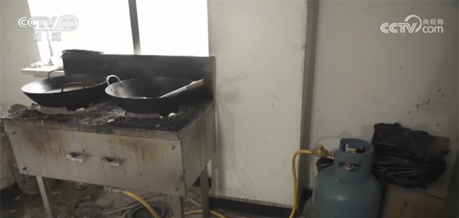 隨后,消防監(jiān)督員發(fā)現(xiàn),賓館疏散樓梯間里面液化氣罐、燃氣灶、操作臺、電飯煲、鍋碗瓢盆等廚房用具一應(yīng)俱全,儼然一個小廚房,而在樓梯間另一側(cè)正在裝修的房間里設(shè)置了床位,供人員住宿。