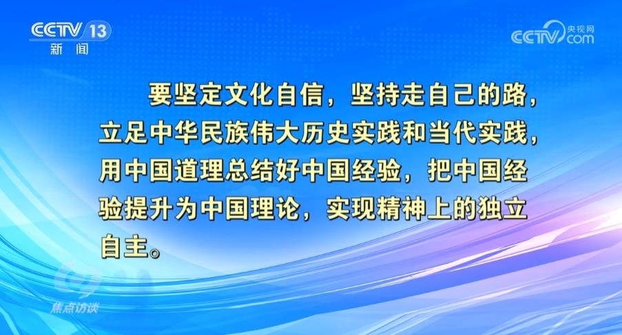 腳踏必由之路,譜寫時代華章。在新的歷史起點上,我們應當如何擔當起新的文化使命,如何繼續(xù)推動文化繁榮、建設文化強國、建設中華民族現(xiàn)代文明?習近平總書記提出了三點具體要求,要堅定文化自信,堅持走自己的路,立足中華民族偉大歷史實踐和當代實踐,用中國道理總結好中國經驗,把中國經驗提升為中國理論,實現(xiàn)精神上的獨立自主。要秉持開放包容,堅持馬克思主義中國化時代化,傳承發(fā)展中華優(yōu)秀傳統(tǒng)文化,促進外來文化本土化,不斷培育和創(chuàng)造新時代中國特色社會主義文化。要堅持守正創(chuàng)新,以守正創(chuàng)新的正氣和銳氣,賡續(xù)歷史文脈、譜寫當代華章。