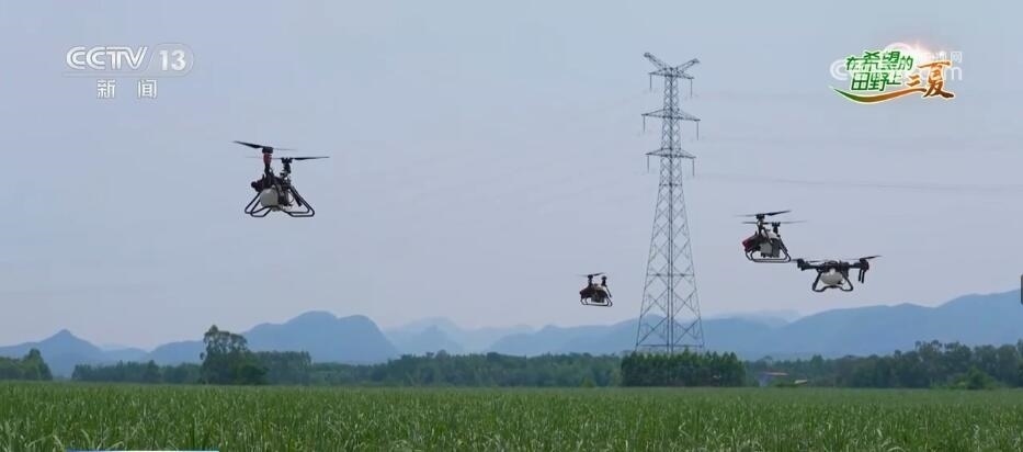 總臺記者 張卉:這里就是位于武宣縣黃茆鎮(zhèn)的雙高糖料蔗種植基地,在我身后中耕培土機和無人植保機在地里面來回穿梭?,F(xiàn)在正是甘蔗的伸長拔節(jié)期,是中耕培土的最佳時期。在這個期間,對甘蔗進行除草、施肥、中耕培土等一系列的夏季的田間管護工作,可以防止甘蔗倒伏,為甘蔗的增產(chǎn)豐收打好基礎(chǔ)。
