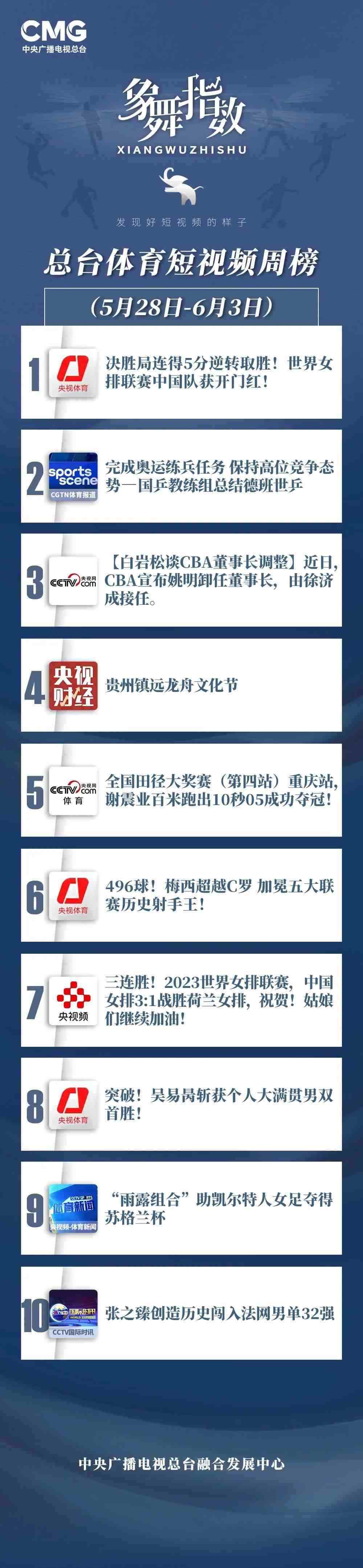 象舞指數(shù)|體育短視頻周榜(5月28日—6月3日)