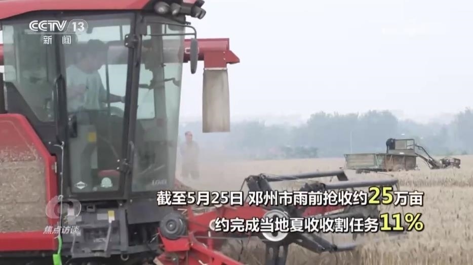 央視網(wǎng)消息(焦點(diǎn)訪談):今天是芒種節(jié)氣,芒種的意思是有芒的麥子快收,有芒的稻子可種。這是一年中農(nóng)事最忙的時節(jié)。夏熟的要收,秋收的要播,春種的要管,首先就是麥?zhǔn)?。河南被稱為“中原糧倉”,是我國小麥播種面積最大的省份,小麥年產(chǎn)量占到全國的四分之一,而位于河南南部的鄧州,則是全國知名的產(chǎn)糧大縣,小麥種植面積210多萬畝。但從5月25日開始,當(dāng)?shù)貐s連續(xù)幾天都是下雨天氣。怎么減輕雨水對收成的影響?