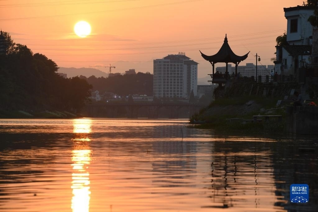 這是6月1日拍攝的位于新安江上游的安徽省黃山市歙縣漁梁景區(qū)。新華社記者 張端 攝