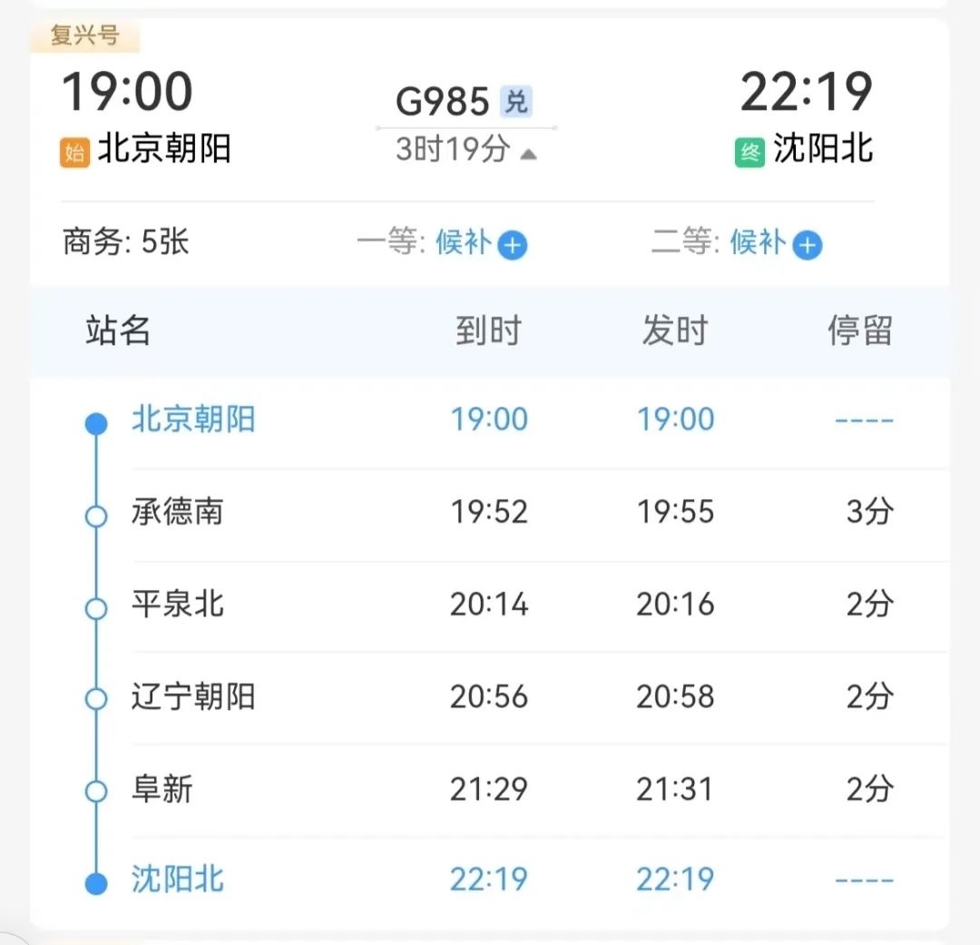 從北京朝陽(yáng)站開(kāi)往沈陽(yáng)北站的