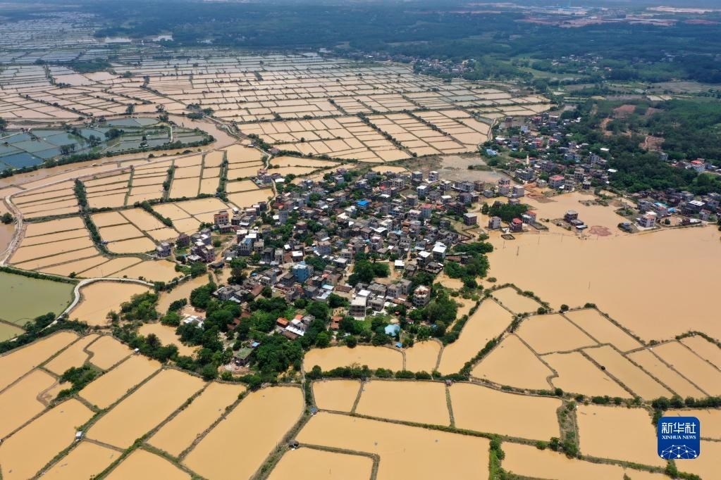 廣西合浦縣白沙鎮(zhèn)受強降雨影響的村莊(6月11日攝,無人機照片)。   新華社記者 陸波岸 攝