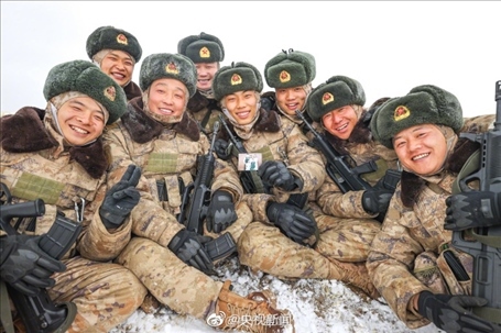 近日,新疆軍區(qū)某合成團(tuán)官兵在海拔5200米的高原,開展邊境巡邏任務(wù)。皚皚白雪之上,邊防官兵手拉著手前行,臉頰凍得通紅,笑容卻堅(jiān)定又自豪。
