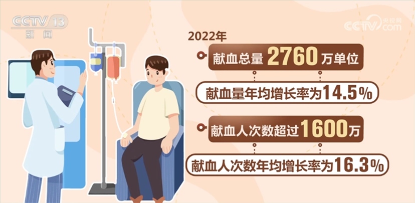 國家衛(wèi)生健康委相關負責人表示,我國無償獻血工作目前已形成了“政府主導、部門協(xié)作、社會支持、公眾參與”的格局,無償獻血制度全面建立,血液管理制度和規(guī)范標準體系不斷完善。全國建立了橫向到邊、縱向到底的血站采供血服務體系。全國共建設血站453家,形成以省級血液中心為龍頭、地市級中心血站為主體、中心血庫為補充的血站服務體系。我國血液安全保障水平大幅提升。全國無償獻血人次數(shù)和獻血量實現(xiàn)20多年持續(xù)增長,千人口獻血率由1998年的4.8提升至2022年11.5,2022年獻血總量2760萬單位,獻血量年均增長率為14.5%。2022年獻血人次數(shù)超過1600萬,獻血人次數(shù)年均增長率為16.3%。今年1—5月,獻血人次數(shù)和獻血量比去年同期增長7.7%和6%。