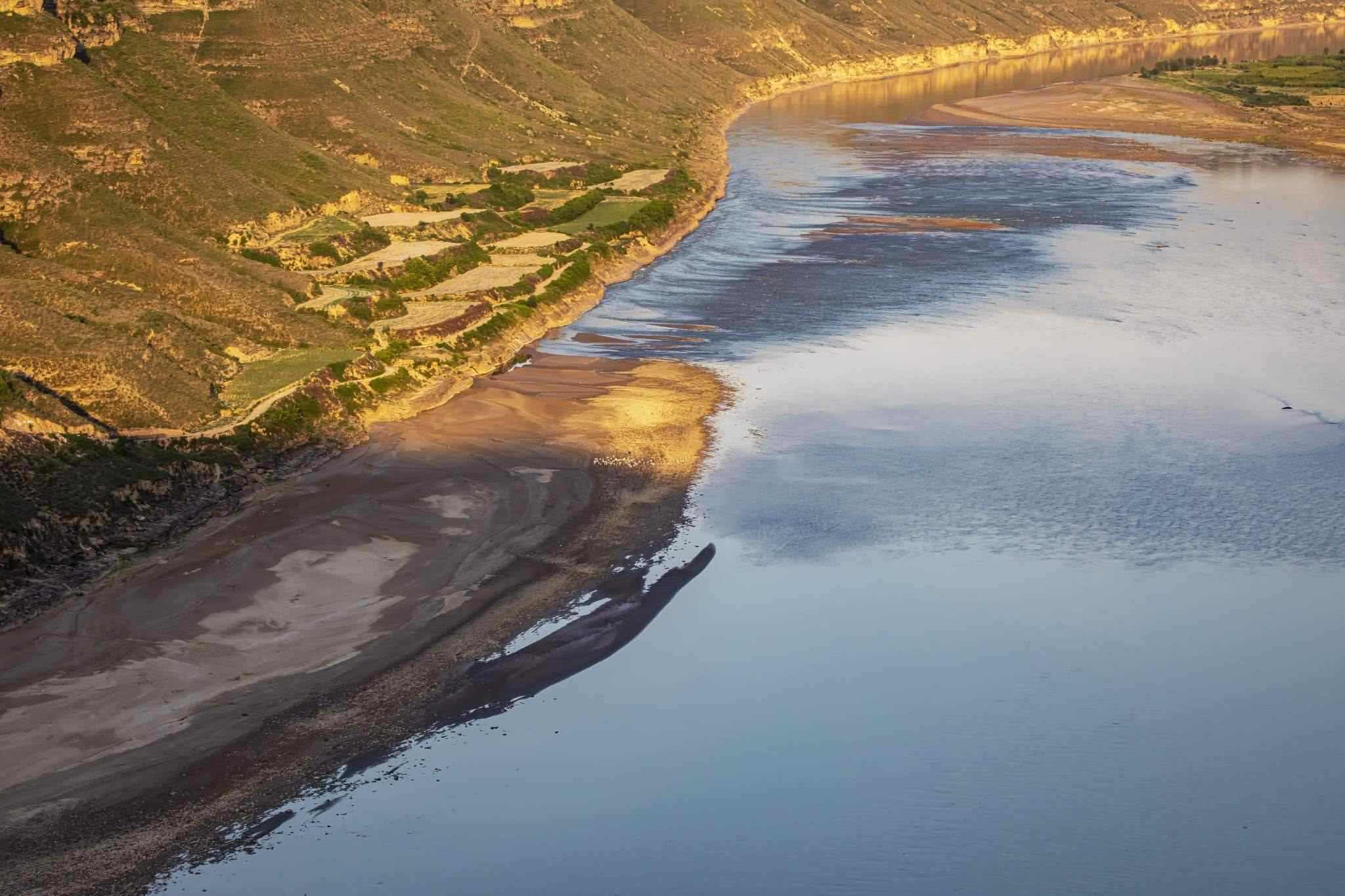 2023年6月14日,陜西省延安市,延川縣乾坤灣鎮(zhèn),晨曦映照會峰寨。視覺中國