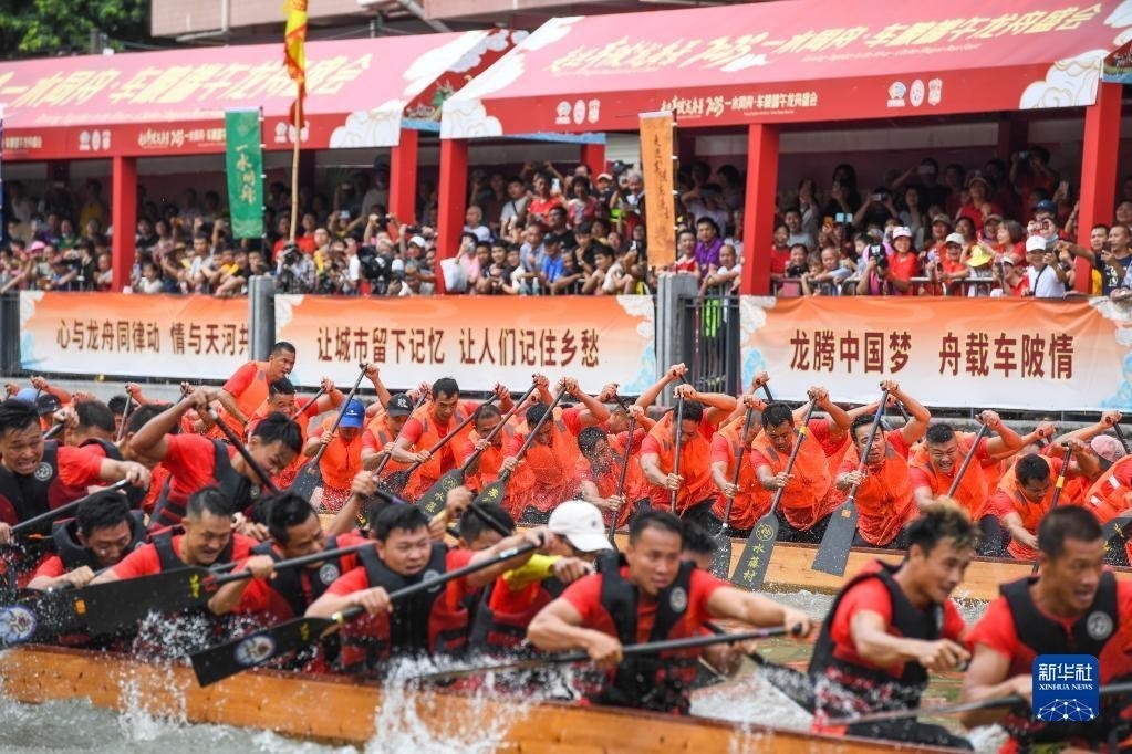 賽龍奪錦代表一種人生態(tài)度,更有著豐富的精神內(nèi)涵。對(duì)于車陂這樣的“城中村”而言,族人在端午回村里劃龍舟、吃龍船飯。龍舟如今既是留住文化記憶的重要載體,更是新都市如何留住老鄉(xiāng)愁的一份珍貴答卷。新華社記者 劉大偉 攝
