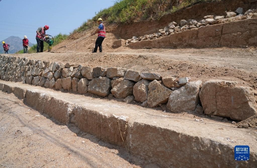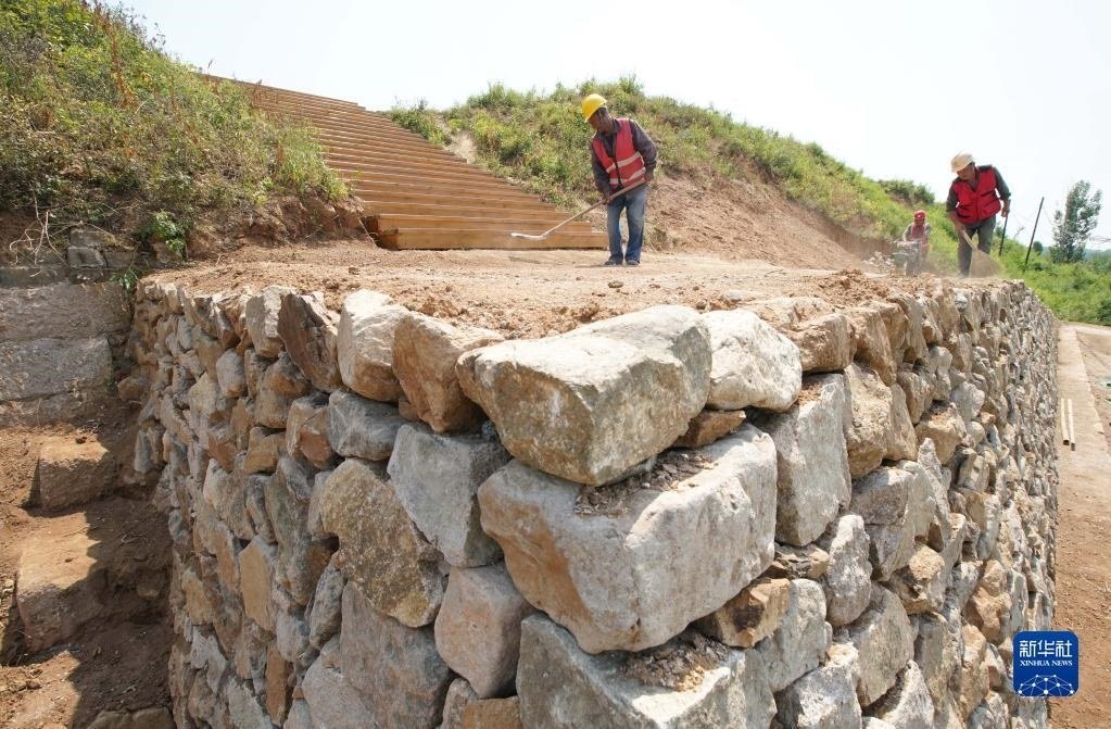近日,河北省秦皇島市山海關(guān)區(qū)山海關(guān)長城保護(hù)展示工程——腰鋪9號(hào)敵臺(tái)和51號(hào)墻臺(tái)馬道保護(hù)修繕工程施工穩(wěn)步推進(jìn)。據(jù)介紹,腰鋪9號(hào)敵臺(tái)和51號(hào)墻臺(tái)馬道是山海關(guān)長城軍事防御體系中重要的附屬設(shè)施。修繕工程預(yù)計(jì)7月底完工。新華社記者 楊世堯 攝