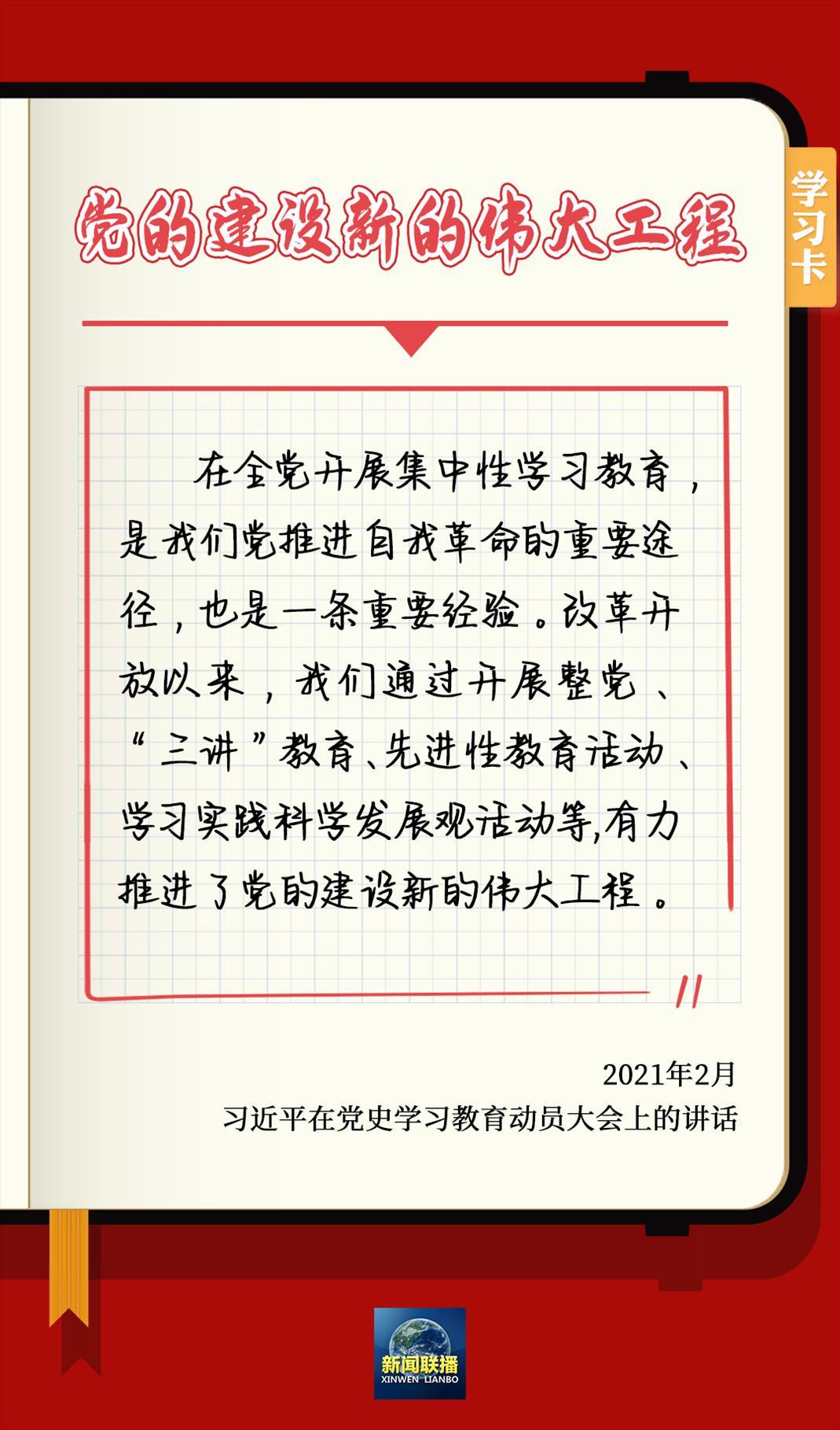 6月16日出版的《求是》雜志發(fā)表習(xí)近平的重要文章強(qiáng)調(diào),把黨的建設(shè)作為一項(xiàng)偉大工程來(lái)推進(jìn),是立黨立國(guó)、興黨強(qiáng)國(guó)的一大法寶。新時(shí)代10年,我們把思想建設(shè)作為黨的基礎(chǔ)性建設(shè),持續(xù)開展黨內(nèi)集中教育,使黨員、干部補(bǔ)足精神之鈣,堅(jiān)守共產(chǎn)黨人精神家園。