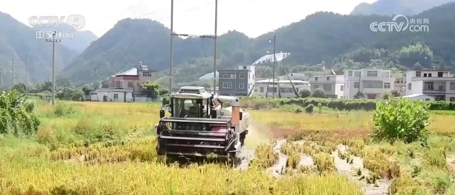 在湖北恩施,68萬畝水稻進入收獲季。巴東縣東瀼口鎮(zhèn)牛洞坪村的千畝懸崖梯田稻浪滾滾,金燦燦的一片。小型收割機穿梭在稻田中,村民們及時將收割的稻谷搬運、貯藏,確保秋糧顆粒歸倉。