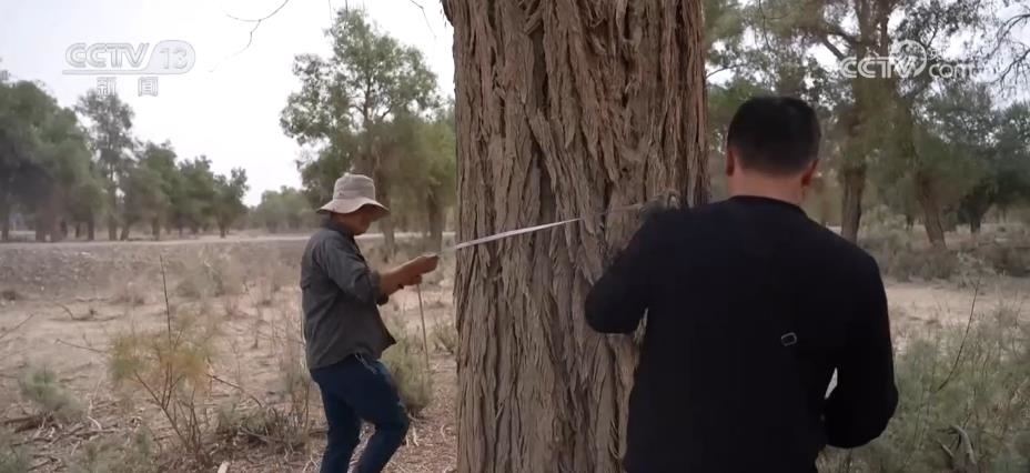有人守護(hù)胡楊林的生長(zhǎng)環(huán)境,也有人專門(mén)記錄胡楊樹(shù)的生長(zhǎng)情況。在沙雅縣境內(nèi)的胡楊林里分布著很多超過(guò)百歲樹(shù)齡的胡楊樹(shù),最近一段時(shí)間,新疆林業(yè)規(guī)劃院的科研人員正在對(duì)這里的胡楊林古樹(shù)群進(jìn)行調(diào)查建檔。