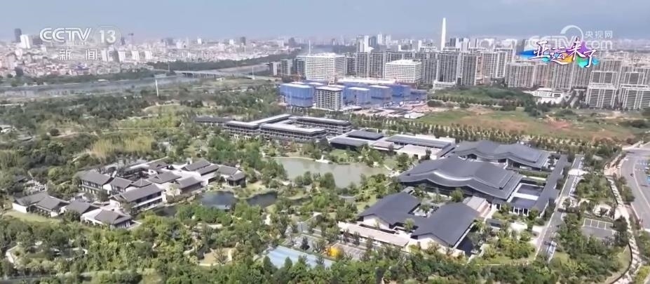 坡屋頂、灰瓦白墻,這里是金華的亞運(yùn)分村。這個(gè)村的建設(shè)非常具有金華特色,各個(gè)建筑的外形吸取了江南造園精髓,灰瓦白墻、小橋流水,各式綠植樹木沿著水系有序分布。