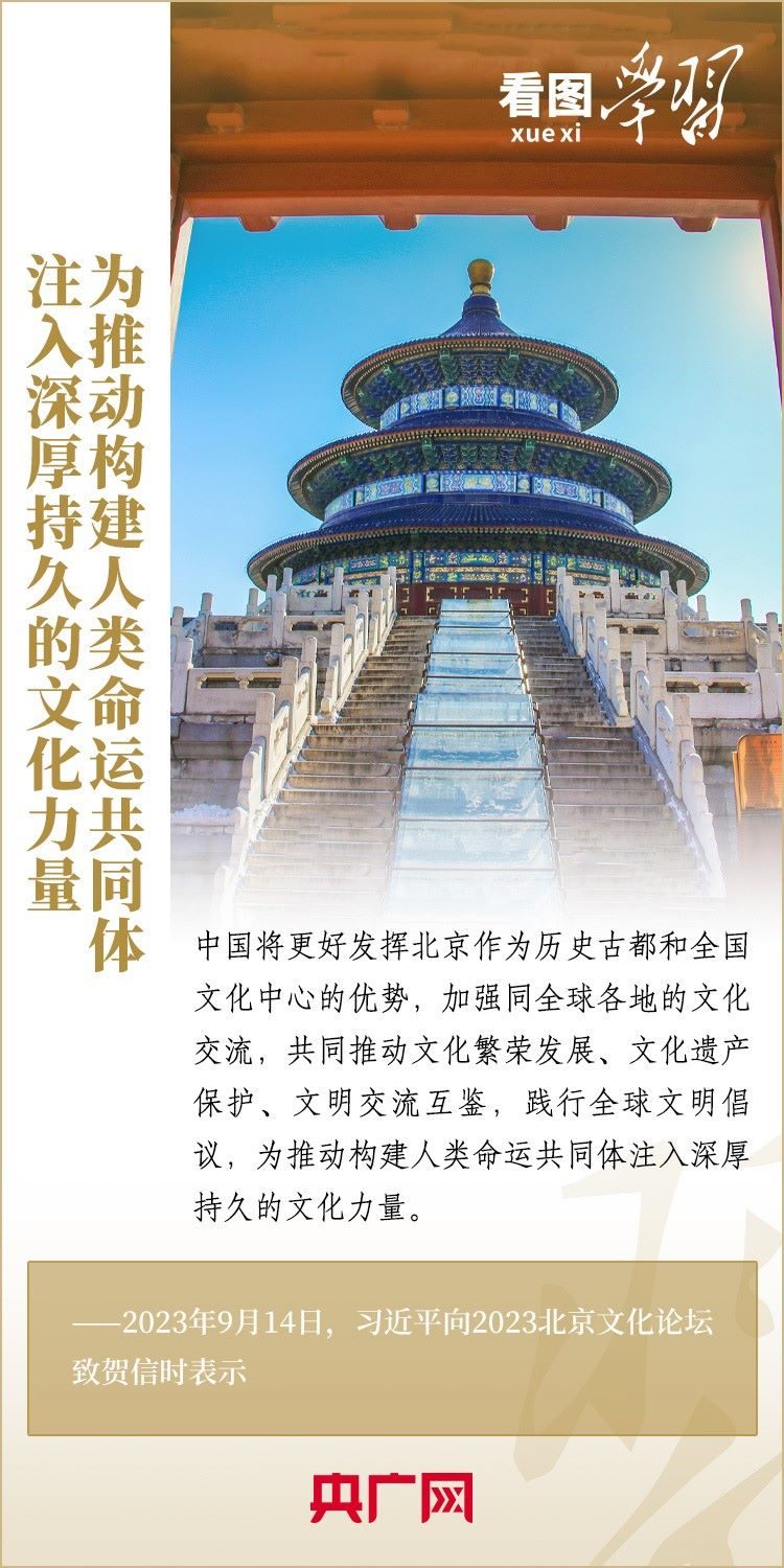 9月14日,以“傳承優(yōu)秀文化 促進交流合作”為年度主題的2023北京文化論壇在北京開幕。習近平主席向論壇致賀信表示,中國將更好發(fā)揮北京作為歷史古都和全國文化中心的優(yōu)勢,加強同全球各地的文化交流,共同推動文化繁榮發(fā)展、文化遺產(chǎn)保護、文明交流互鑒,踐行全球文明倡議,為推動構(gòu)建人類命運共同體注入深厚持久的文化力量。
