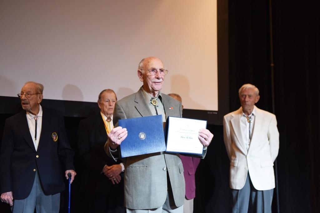2019年5月11日,在美國拉斯維加斯舉行的中美二戰(zhàn)友誼暨飛虎隊(duì)歷史論壇上,飛虎隊(duì)老兵麥克馬倫(前)獲頒證書。