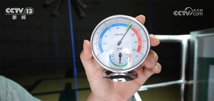 我現(xiàn)在是在氣膜倉的頂部,此刻倉外的溫度是30℃左右,我們再到倉內(nèi)看一下。一進來就感覺倉里邊一股涼氣襲人,我們來看這個溫度計上顯示此刻的溫度大概是在22℃,也就是說倉內(nèi)外的溫差有8℃左右,保溫性能還是非常明顯的。