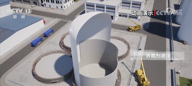 在外膜充氣成型后,整個施工過程都在膜內(nèi)進行,施工過程機械化程度高、安全環(huán)保,幾乎不受環(huán)境和天氣影響。