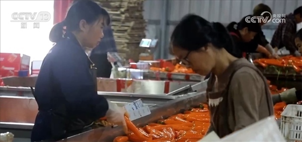 在離種植基地不遠(yuǎn)處的加工車間,一根根胡蘿卜經(jīng)過(guò)清洗、打包等一系列處理后,最終經(jīng)冷鏈物流發(fā)往全國(guó)各地。