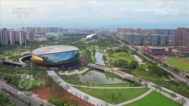 杭州亞運(yùn)會運(yùn)河體育公園指揮長馮晶:“亞運(yùn)體育公園是按照綠色環(huán)保功能打造的,也是浙江省首座體育場館綠色三星級建筑。體育館的外立面采用陽極氧化鋁材料,在雨天有自清潔的功能,不用人工清洗外立面。透水混凝土在雨天有非常好的滲水功能,和我們的人工湖相結(jié)合,在晴天可以反哺草地,實(shí)現(xiàn)海綿城市的標(biāo)準(zhǔn)規(guī)范?!?/p>